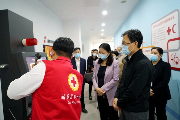 10月18日,中国红十字会党组成员、副会长孙硕鹏,省红十字会党组书记、常务副会长齐敦品一行来苏州调研红十字工作。中国红十字基金会副理事长兼秘书长贝晓超一同调研。