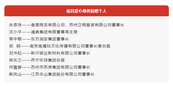 在此,苏州市红十字会呼吁广大爱心企业和爱心市民加入人道主义事业,以实际行动弘扬“人道、博爱、奉献”的红十字精神,凝聚起向善向上的正能量,传递更多爱和希望。