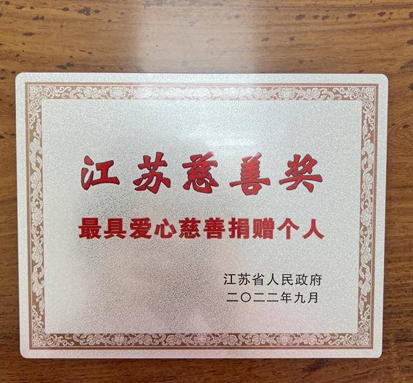 2022年9月5日,第六届“江苏慈善奖”表彰大会在南京举行。苏州市红十字会推荐的何露娜女士获评“最具爱心慈善捐赠个人”。